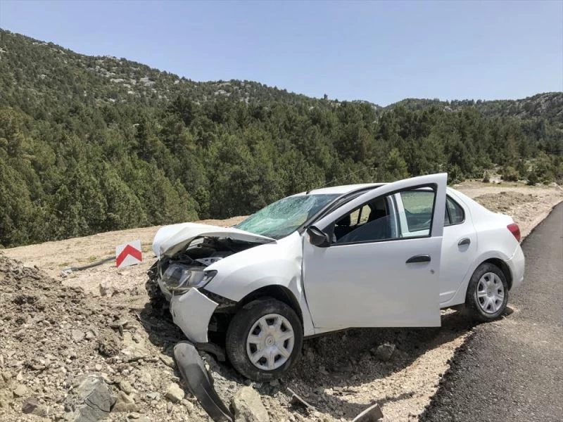 ANTALYA (AA) - Akseki ilçesinde kontrolden çıkan otomobilin yol kenarındaki toprak yığınına çarpması sonucu sürücü yaralandı.
