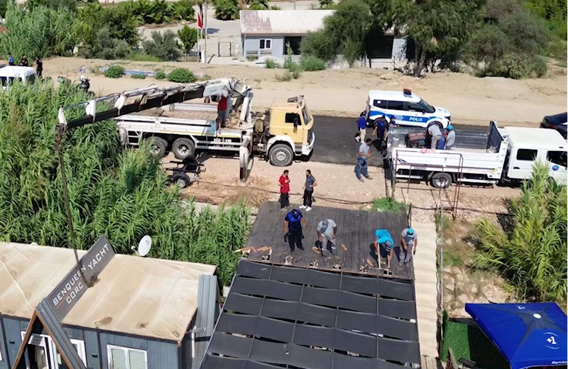 ANTALYA - Antalya'nın Aksu ilçesinde "kral yolu" olarak bilinen köprü ile deniz arasındaki bölgeye kaçak yapılan konteyner yapılar kaldırıldı.