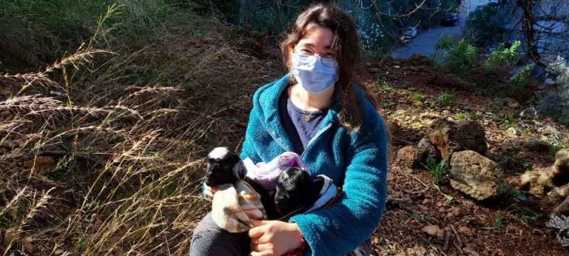 Yeni doğum yaptığı görülen keçi ve iki oğlağı zarar görmemesi için fileye konularak, güvenli bir bölgeye taşındı. AKUT ekibinin su verdiği keçi ve iki oğlağı sahibine teslim etti.