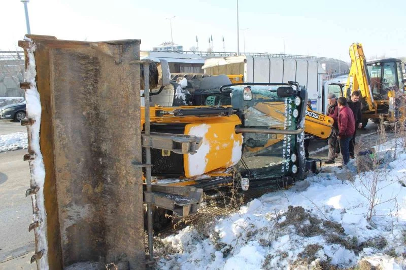 Akyurt Yeşiltepe Mahallesi Çubuk Caddesi’nde kontrolden çıkan bir kepçe devrildi.