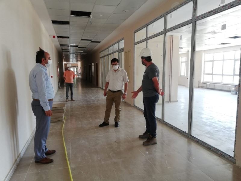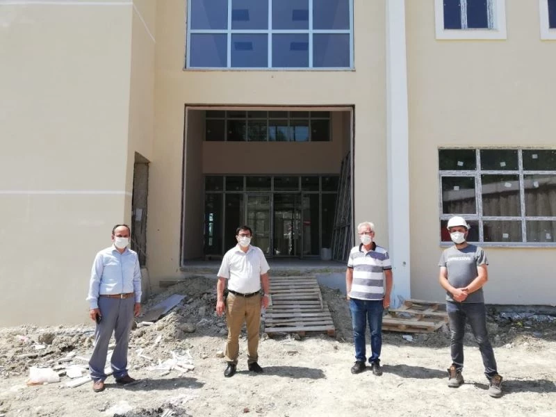 Alaçam Kaymakamı Fikret Zaman, 250 kişilik kız öğrenci yurdu inşaatında incelemelerde bulundu