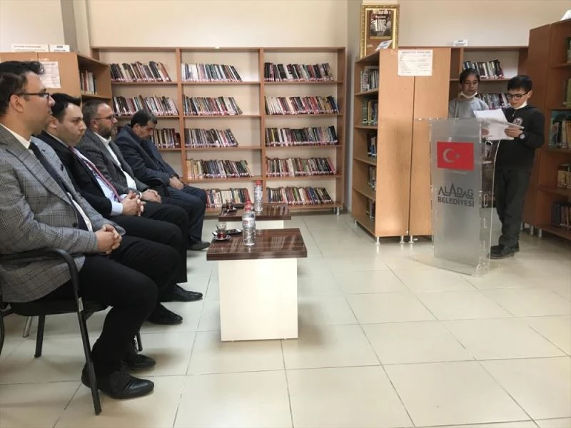 Kütüphane Haftası kapsamında ilçedeki halk kütüphanesinde düzenlenen kutlama etkinliğinde, öğrenciler tarafından şiirler okundu.
