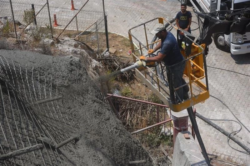 Alanya Belediyesi Fen İşleri Müdürlüğü ekipleri, Sakine Nesibe Zamanoğlu Özel Eğitim Uygulama Okulu’nda çevre güvenliğini arttırmak amacıyla püskürtme beton (shotcrete) tekniği ile çalışma başlattı. Okul öğrencilerinin teneffüs saatlerindeki oyun alanlarının daha güvenli olması için yürütülen çalışma kapsamında, okulun doğu bölümündeki istinat duvarından aşağıya taş ve benzeri nesnelerin düşmemesi için güvenlik daha da arttırılıyor.