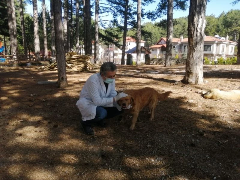 Alanya Belediyesi Veteriner İşleri Müdürlüğü, kırsal mahallelerde, sokak hayvanlarını tek tek aşılıyor.