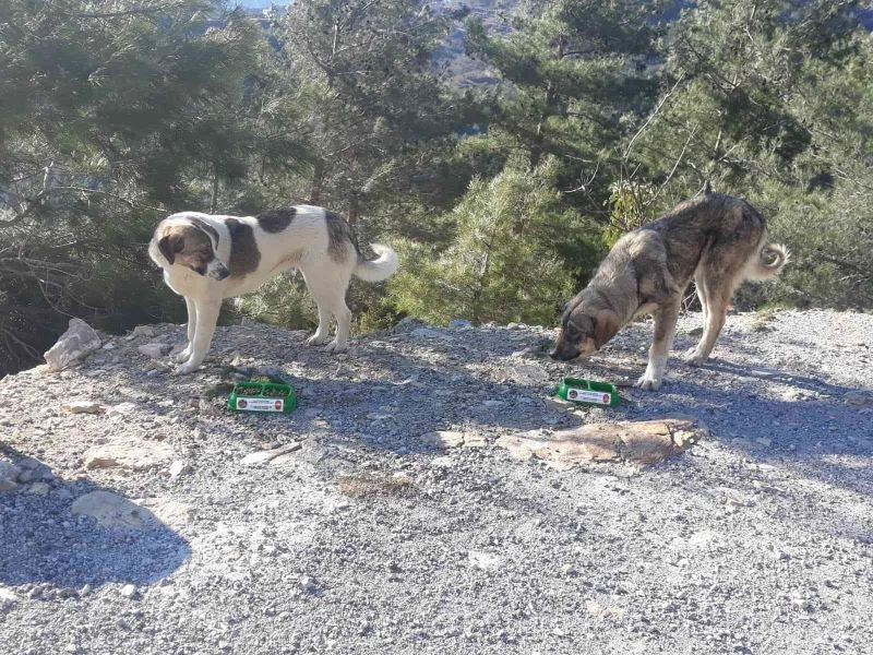Alanya Belediyesi Veteriner İşleri Müdürlüğü’ne bağlı ekipler, sokak hayvanlarının beslenme düzeninin sağlanması için belirlenen besleme noktalarına mama bırakıyor.