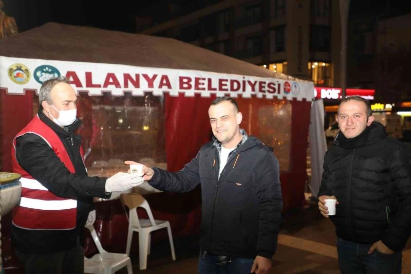 Alanya Belediyesi Hacet Meydanı’nda kurduğu çadırda soğuk kış günlerinde vatandaşlara sıcak çorba ikram etti.