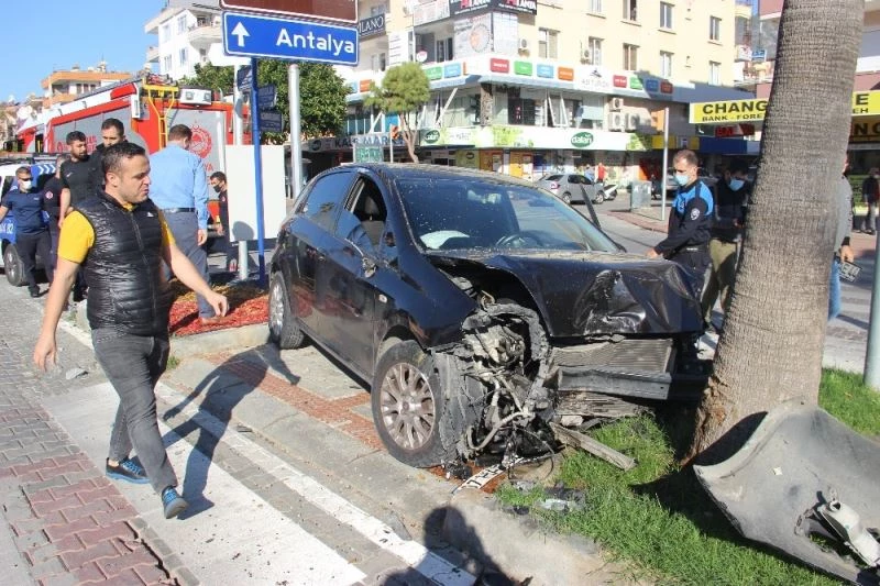 Antalya’nın Alanya ilçesinde Alanya Kestelspor’un orta saha oyuncusu Murat Sevimler, otomobili ile önce motosiklete sonra refüjdeki ağaca çarptı. Hava yastıkları açılan otomobilden çıkan futbolcu kazayı yara almadan atlatırken, 2 kişi yaralandı.