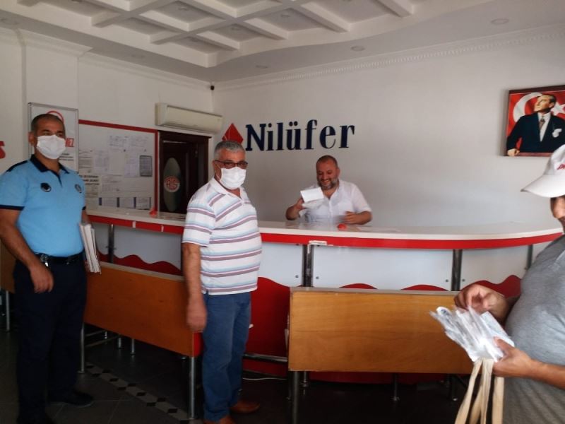 Antalya Büyükşehir Belediyesi, pandemi ile mücadele kapsamında Alanya Otogarı’nda faaliyet gösteren firma çalışanlarına ücretsiz maske dağıttı.