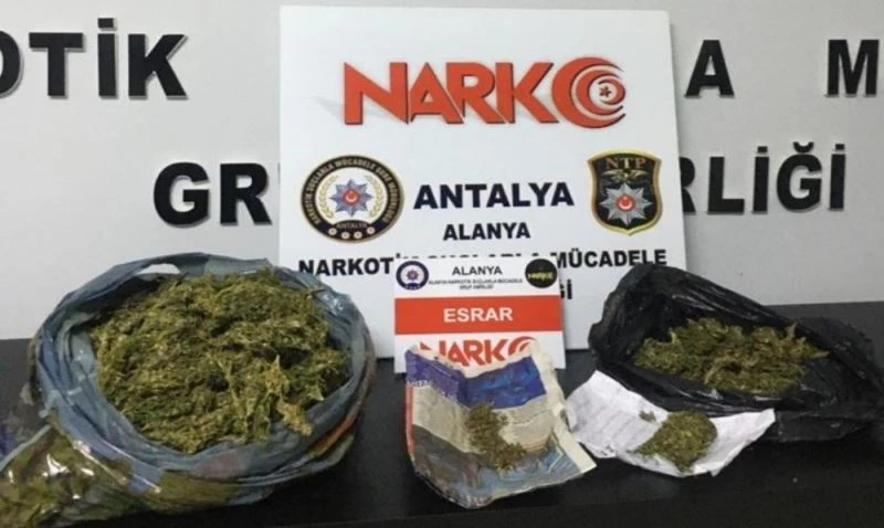 Alanya Cumhuriyet Başsavcılığı’nın koordinesinde Alanya İlçe Emniyet Müdürlüğü Narkotik Suçlarla Mücadele Grup Amirliği ekipleri, uyuşturucu madde ticaretinin ve kullanımının engellenmesine yönelik yapmış olduğu çalışmalarını sürdürdü. Ekipler, H. K. Y. (38) isimli şüphelinin Oba Mahallesi’ndeki ikametinde uyuşturucu madde sattığı bilgisine ulaşarak çalışma başlattı. Teknik ve fiziki takibi süren polis belirlenen adresin önünde G. G. (41) ve H. K. Y. isimli şüphelilerin kısa süreli buluşup ayrıldıklarını tespit etti. Yaya olarak ilerleyen şüpheli G. G. takibe alan ekipler, Ahmet Tokuş Bulvarı üzerinde durdurarak gözaltına aldıktan sonra üst araması yaptı. G. G.’nin üzerinde 14.35 gram esrar bulunurken, diğer şüpheli H. K. Y.’ye ise adresinde yakalanarak gözaltına alındı. Adreste yapılan aramalarda ise 1 kilo 136 gram esrar ele geçirildi.