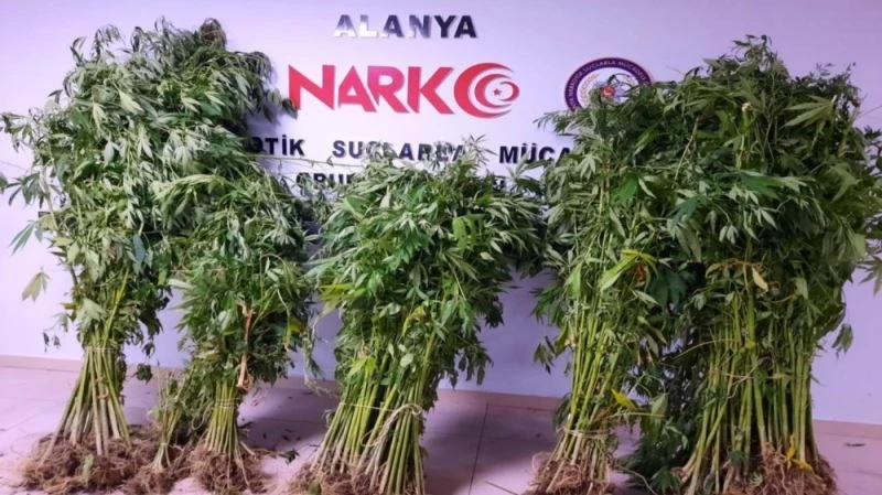 Alanya Cumhuriyet Başsavcılığı’nın koordinesinde Alanya İlçe Emniyet Müdürlüğü Narkotik Suçlarla Mücadele Grup Amirliği ekipleri, uyuşturucu madde ticaretinin ve kullanımının engellenmesine yönelik yapmış olduğu çalışmaları sürdürdü. Ekipler yaptıkları çalışmalarda Alanya’nın Soğukpınar Mahallesi’ndeki ormanlık alanda uyuşturucu yetiştirildiği bilgisine ulaştı. Bunun üzerine belirlenen adrese baskın düzenleyen ekipler, ekili vaziyette 326 kök ile kurutulmaya bırakılmış 78 kök Hint keneviri ele geçirdi. Soruşturmayı derinleştiren polis, olayla ilgili Mustafa D. (32) isimli şüpheliyi gözaltına aldı. Gözaltına alınan Mustafa D.’nin polis merkezindeki işlemlerinin ardından adliyeye sevk edileceği öğrenildi.