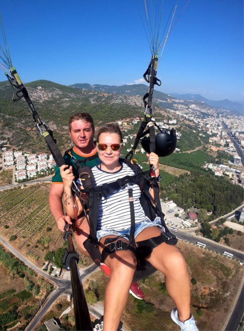 ANTALYA (AA) - Antalya'nin Alanya ilçesinde otizmli çocuklarin anneleri, 30 Agustos Zafer Bayrami'ni kutlamak ve otizme dikkati çekmek amaciyla yamaç parasütüyle yapti.