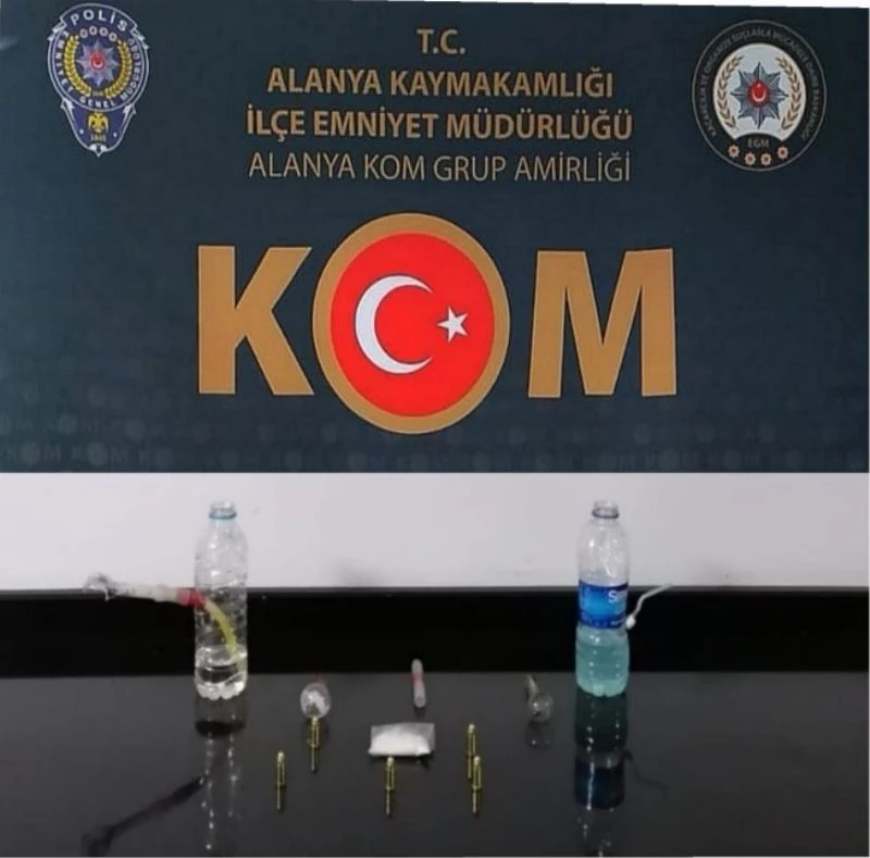 Alanya İlçe Emniyet Müdürlüğü Kaçakçılık ve Organize Suçlarla Mücadele (KOM) Grup Amirliği ekipleri, Gaziantep Cumhuriyet Başsavcılığı’nca ‘suç işlemek amaçlı örgüt kurmak’ ve ‘uyuşturucu madde ticareti suçundan’ aranan ve hakkında 10 ay kesinleşmiş hapis cezası bulunan A.Y.’nin (40) ilçede olduğu bilgisine ulaşarak harekete geçti. Ekipler yaptıkları teknik ve fiziki takipte şüpheli A.Y.’yi kullandığı 07 AGJ 007 plakalı otomobiliyle Atatürk Caddesi üzerinde seyir halindeyken durdurarak gözaltına aldı. Polis savcılıktan alınan iznin ardından şüphelinin İncekum Mahallesi’ndeki adresinde de arama yaptı. Yapılan aramalarda 11.64 gram metamfetamin uyuşturucu maddesi ve uyuşturucu madde kullanma aparatları ele geçirildi. Emniyetteki işlemlerinin ardından adliyeye sevk edilen A.Y. sulh ceza hakimliğince tutuklanarak cezaevine gönderildi.