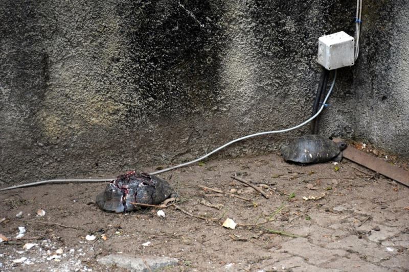 Saray Mahallesi Damlatas Sahil Mezarligi'nda yasayan kaplumbaga ve sokak kedilerini beslemeye giden Pinar ve Osman Aydin, çok sayida kaplumbaganin tasla ezilerek telef edildigini gördü.