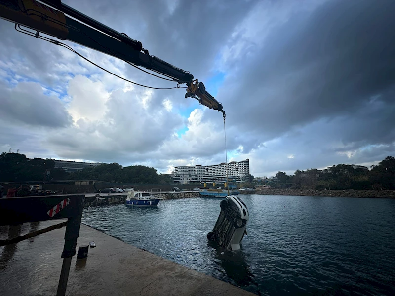 İlçenin Okurcalar Mahallesi'ndeki iskelede, sürücüsü henüz belirlenemeyen otomobil, iddiaya göre hareket etmek için manevra yaparken denize düştü.
