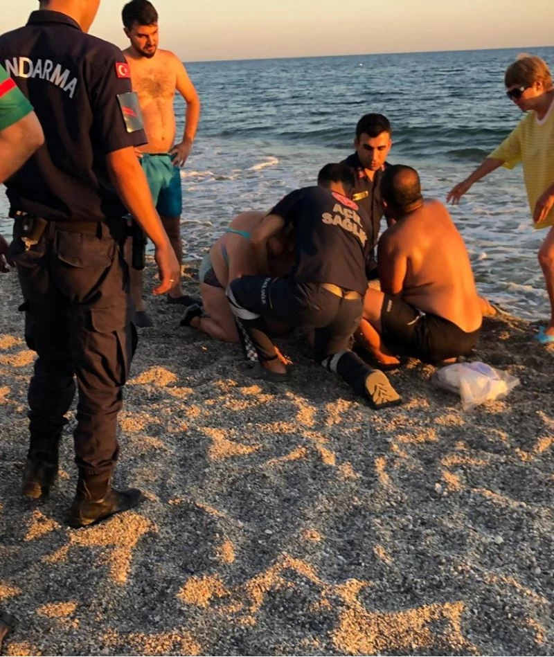 Çevredekilerin yardımıyla kıyıya çıkarılan kişiye, sahilde bulunan bir doktor ilk müdahaleyi gerçekleştirdi.