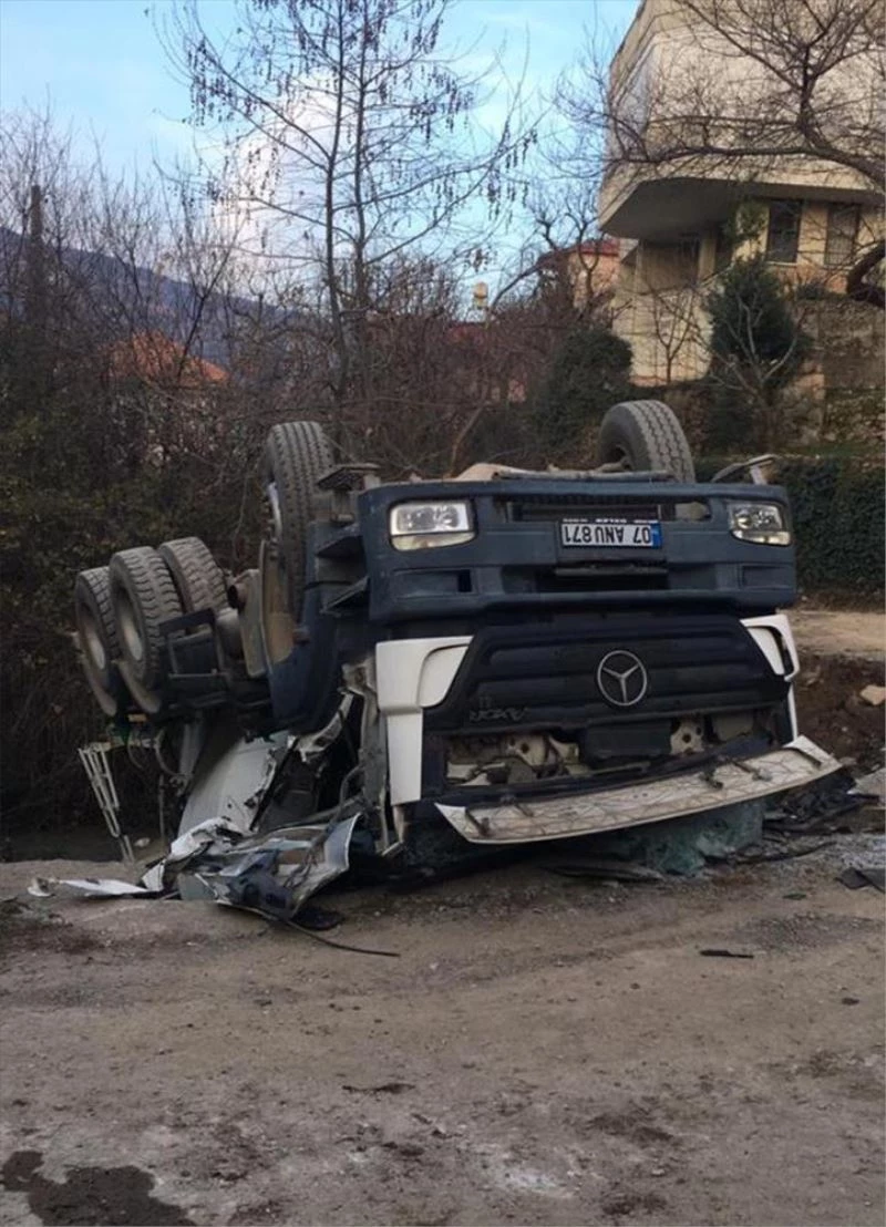 Deretürbelinas Mahallesi'nde Necati Vardar'ın (60) kullandığı 07 ANU 871 plakalı çimento mikseri, manevra sırasında yaklaşık 20 metre yükseklikten dere yatağına yuvarlandı.