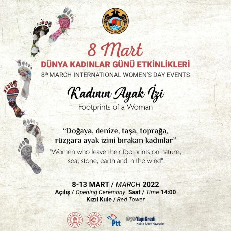 Alanya Belediyesi Kültür ve Sosyal İşler Müdürlüğü koordinasyonunda tarihi Kızılkule’de düzenlenecek sergi, Kulenin giriş katında açılacak. “Kadının Ayak İzi” başlıklı sergide, kulenin her bir gözünde başka bir konu ele alınacak. Kadın teması işlenmiş pullar, kadın figürlü paralar, Hayri Şen - Pul Koleksiyonu, Çini-Seramik yapımı, Keçe Çiçekler ve Selçuklu, Keçe Pazırık Kurganı, Kilim Sergisi ve İpek Sergisi ziyaretçilerin beğenisine sunulacak.