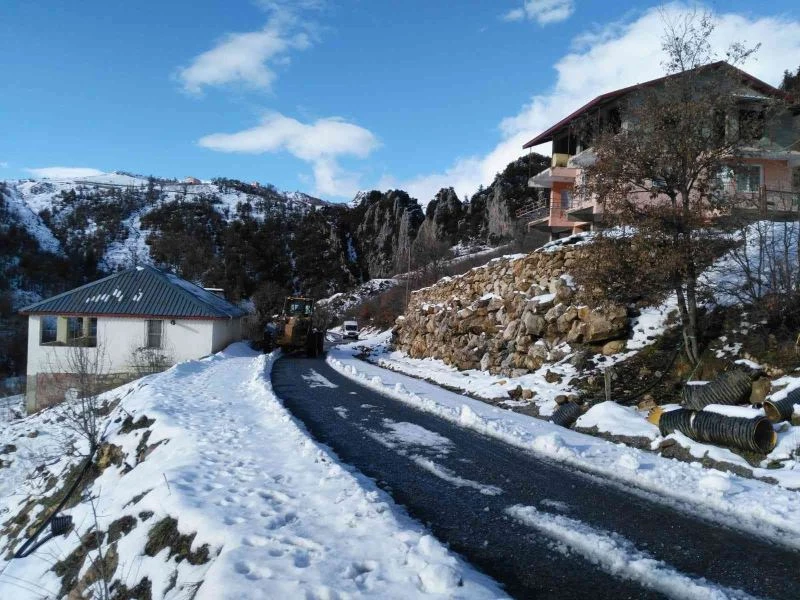 Antalya Büyükşehir Belediyesi, Alanya’nın yüksek kesimlerinde kardan kapanan yolları ulaşıma açıyor.