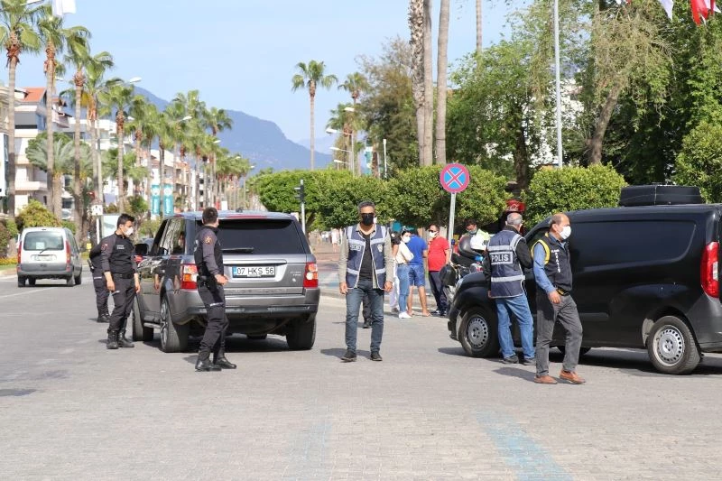 Alanya’da korona virüs tedbirleri kapsamında Perşembe günü saat 19.00 ile Pazartesi saat 05.00 arasında uygulanan sokağa çıkma kısıtlamasında polis ve jandarma ekipleri sıkı denetimler yaptı. Polis sorumluluk bölgesinde yaptığı denetimlerde, sokağa çıkma kısıtlamasını dışarı çıkarak ihlal eden ve maske takmayan 19 kişiye toplam 65 bin 550 TL idari para cezası uygulandı.