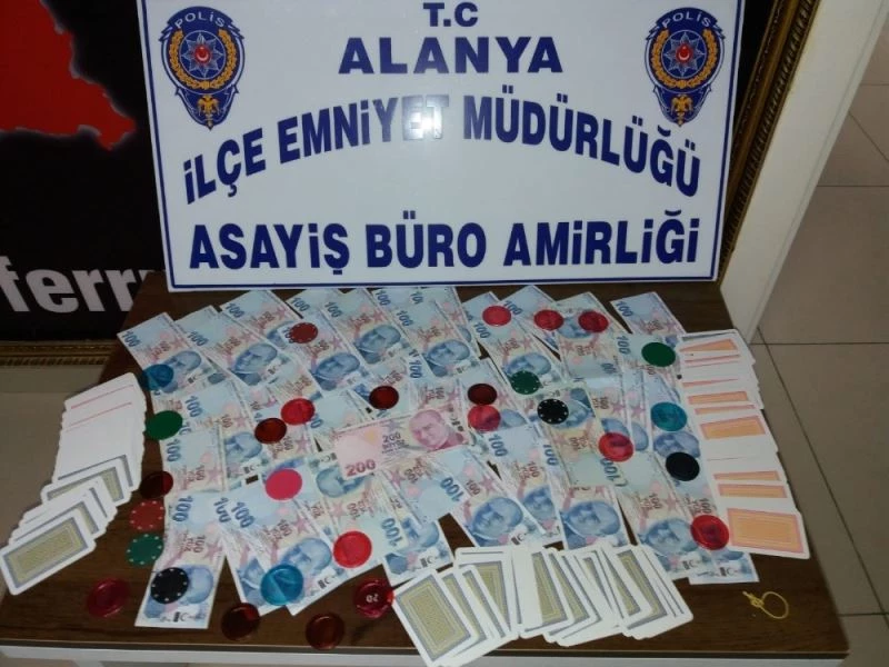 Alanya’nın Şekerhane Mahallesi’ndeki kıraathanede kumar oynatıldığı bilgisine ulaşan Alanya İlçe Emniyet Müdürlüğü Asayiş Büro Amirliği ekipleri harekete geçti. Belirlenen adrese dün saat 23.30 sıralarında baskın düzenleyen ekipler, kumar oynattığı iddia edilen 1 kişi ile kumar oynayan 4 şüpheliyi gözaltına aldı. Baskında kumardan elde edildiği öğrenilen 5 bin 300 TL ile çok sayıda iskambil kağıdı ve oyun pulu ele geçirildi. Kumar oynadığı iddia edilen 4 kişiye idari para cezası uygulanırken, 1 kişi hakkında ise kumar oynanmasına yer ve imkan sağlamak suçlarından adli işlem başlatıldı.