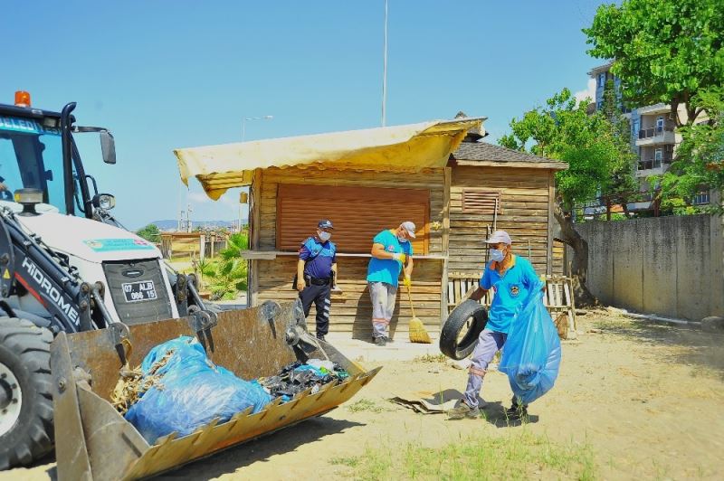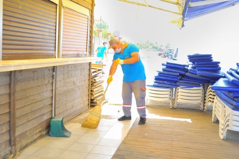 Alanya Belediyesi, tüm dünyayı etkisi altına alan korona virüs nedeniyle koyulan tedbirlerden dolayı açılamayan sahil büfelerini ve çevresini temizledi.