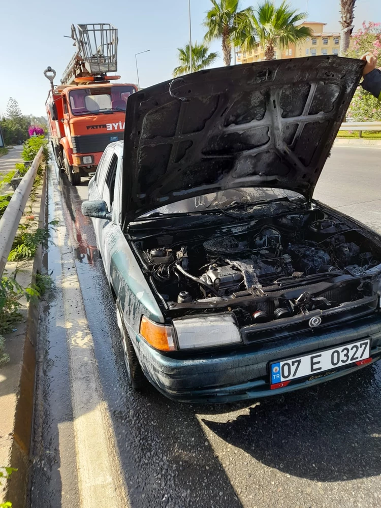 E.Ü. (22) idaresindeki 07 E 0327 plakalı otomobil, Türkler Mahallesi D-400 kara yolunda henüz belirlenemeyen nedenle alev aldı.