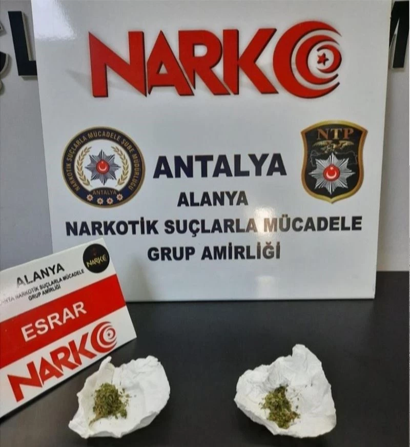 Alanya Cumhuriyet Başsavcılığı koordinesinde Alanya İlçe Emniyet Müdürlüğü Narkotik Suçlarla Mücadele Grup Amirliği ekipleri, uyuşturucu madde ticaretinin ve kullanımının engellenmesine yönelik yapmış olduğu çalışmaları sürdürdü. Ekipleri yaptıkları çalışmalarda Güllerpınarı Mahallesi Molla Osman Caddesi’nde şüphe üzerine B.K. (26) ve B.U.’yu (19) durdurarak, üst araması yaptı. Şüphelilerin üzerinden 1,70 gram esrar ele geçirildi. Bu kişilere uyuşturucu satışı yaptığı öğrenilen E.A. (24) isimli şüpheli ise Cumhuriyet Mahallesi’nde bulunan iş yerinde yakalanarak gözaltına alındı. Şüpheli E.A.’nın üzerinde de 1,95 gram esrar ele bulundu. Gözaltına alınan B.K. ve B.U. haklarında ’Uyuşturucu madde bulundurmak ve kullanmak’ suçundan işlem yapıldıktan sonra savcılık talimatıyla serbest kalırken, E. A. ise emniyetteki işlemlerinin ardından sevk edildiği adliyede sulh ceza hakimliğince tutuklanarak cezaevine gönderildi.