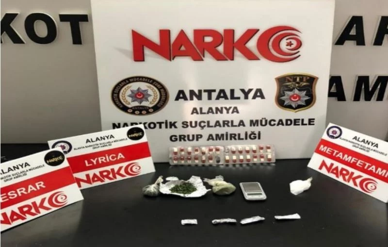 Alanya Cumhuriyet Başsavcılığı’nın koordinesinde Alanya İlçe Emniyet Müdürlüğü Narkotik Suçlarla Mücadele Grup Amirliği ekipleri, uyuşturucu madde ticaretinin ve kullanımının engellenmesine yönelik yapmış olduğu çalışmalarını sürdürdü. Ekipler yaptıkları çalışmalarda Kızlarpınarı Mahallesi Hacıkadiroğlu Caddesi üzerinde yaya olarak ilerleyen Ahmet S.’nin (41) durumundan şüphelenerek durdurdu. Şüpheli Ahmet S.’ye polis tarafından yapılan üst aramasında 4 parça halinde toplam 2.70 gram metamfetamin, kırmızı ve yeşil reçeteyle satılan uyuşturucu etkili 26 tablet Lyrica isimli hap ve 5.12 gram esrar el geçirildi. Polis şüpheli Ahmet S.’nin evine de arama yapmak için girdiğinde ikamette bulunan İbrahim K. (46), Harun Y. ve Recep K. isimli şüphelileri de gözaltına aldı. Adreste yapılan aramalarda ise uyuşturucu satışında kullanılan hassas terazi, 7.50 gram metamfetamin ve 5 gram esrar bulundu. Gözaltına alınan Harun Y. ve Recep K. hakkında ‘Uyuşturucu madde bulundurmak ve kullanmak’ suçundan işlem yapıldıktan savcılık talimatıyla serbest kalırken, diğer 2 şüpheli ise emniyetteki işlemlerinin ardın ‘Uyuşturucu madde ticareti yapmak’ adliyeye sevk edileceği öğrenildi.