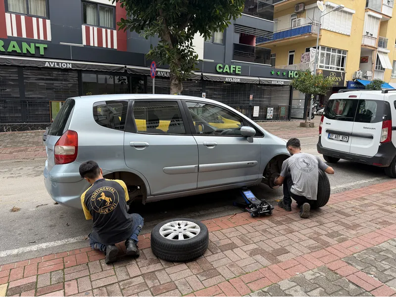 Öte yandan zanlının masrafları karşılayacağını belirtmesi üzerine olay yerine gönderilen tamirci, patlak lastikleri yenileriyle değiştirdi.