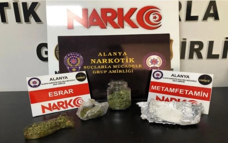 Alanya Cumhuriyet Başsavcılığı koordinesinde Alanya İlçe Emniyet Müdürlüğü Narkotik Suçlarla Mücadele Grup Amirliği ekipleri, uyuşturucu madde ticareti ve kullanımının engellenmesine yönelik çalışmalarını sürdürdü. Ekipler yaptıkları çalışmalarda Alanya Otogarı’nda durumundan şüphelendikleri F.E.(23) ve M.A.’yı (34) durdurdu. Yapılan üst aramasında M.A ‘nın üzerinden 28.87 gram metamfetamin bulundu. Şüpheli F.E.’nin Güllerpınarı Mahallesi Hasan Akçalıoğlu Caddesi üzerindeki ikametinde yapılan aramada ise 25 gram esrar ele geçirildi. Gözaltına alınan 2 şüpheli emniyetteki işlemlerinin ardından yarın adliyeye sevk edilecek.