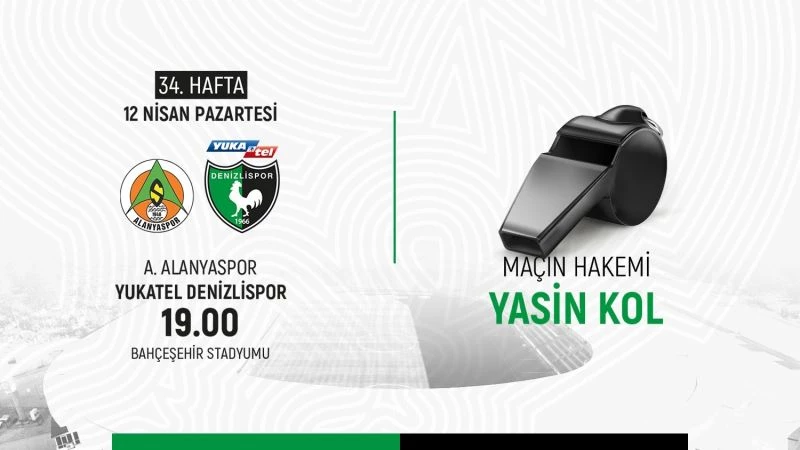Süper Lig’in 34. haftasında oynanacak Aytemiz Alanyaspor ile Yukatel Denizlispor maçını hekem Yasin Kol yönetecek.