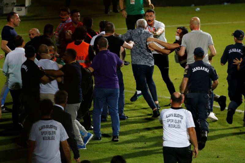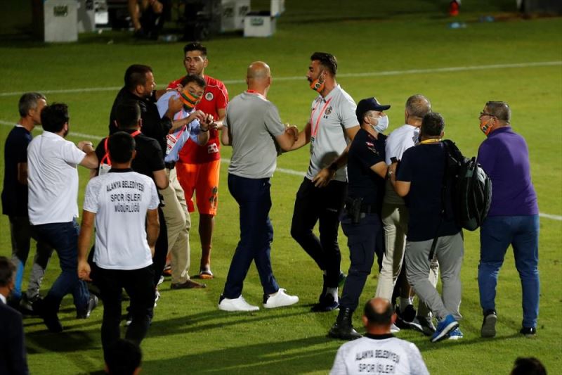 Bu sirada Trabzonspor Kulüp Baskani Ahmet Agaoglu da sahaya inerek Alanyaspor Kulübü çalisanlarina vurmaya kalkisti. Jandarma ekipleri ve bazi yöneticilerin araya girmesiyle sakinlestirilen Agaoglu, sahadan uzaklastirildi.