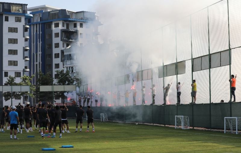 Antrenmanı Alanyaspor Başkanı Hasan Çavuşoğlu, Alanya Belediye Başkanı Adem Murat Yücel, Jandarma Komutanı Yarbay Serkan Akbaba ve Alanya İlçe Emniyet Müdürü Alper Avcı ile çok sayıda taraftarlarımız da izledi. Antrenmanın ısınma bölümünü izleyen taraftarlar ise meşaleler yakarak, tezahüratlarıyla turuncu yeşilli ekibe destek verdi. Futbolcuları tek tek tribüne çağırarak sevgi gösterisinde bulunan taraftarlar, Teknik Direktör Erol Bulut’tan ise yarın oynanacak maç için galibiyet istedi.