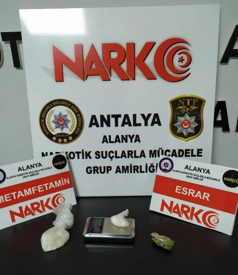 Antalya’nın Alanya ilçesinde polisin durdurduğu araçta bir miktar esrar ve metamfetamin ele geçirildi. Olayla ilgili gözaltına alındıktan sonra adliyeye sevk edilen 2 şüpheli tutuklandı.