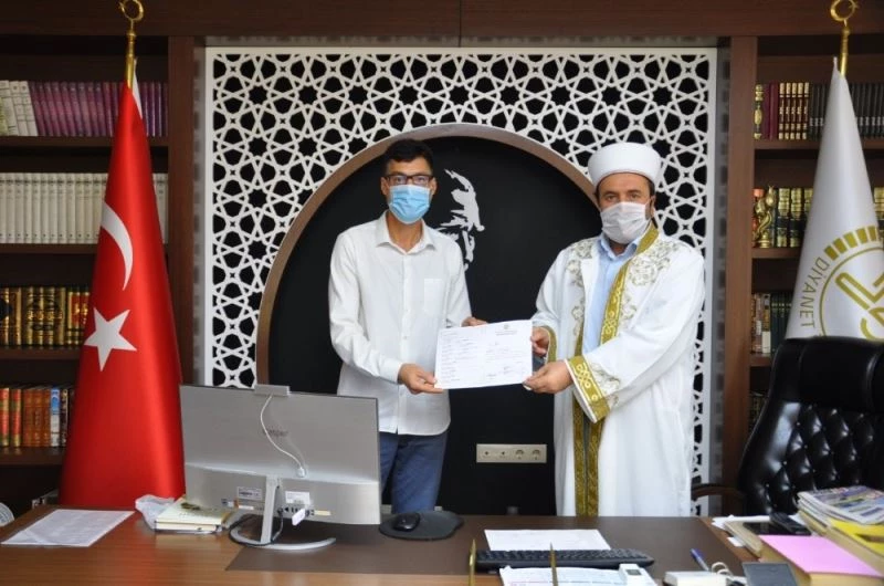 Alanya’ya tatil için gelen ve İslamiyet’i araştırarak Müslüman olmak isteyen Rus vatandaşı Aleksei Belyi İlçe Müftülüğüne giderek başvurdu. Burada kendisi için Müftülük makamında ihtida merasimi düzenlendi. Kur’an-ı Kerim tilavetiyle başlayan ihtida merasiminde Alanya İlçe Müftüsü Dr. İhsan İlhan tarafından İslamiyet hakkında Aleksei Belyi’ye bilgiler verildi.