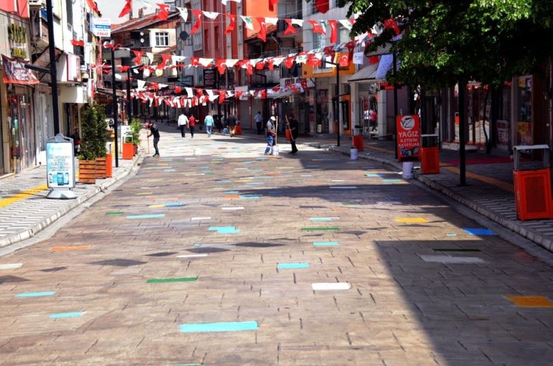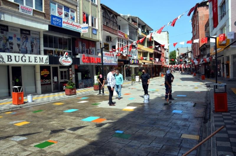 Çalışmaları yerinde inceleyen Alaplı Belediye Başkanı Nuri Tekin, Hükümet Caddesi ve Cumhuriyet Meydanındaki renkli zemini yeniden renklendirdiklerini söyledi.