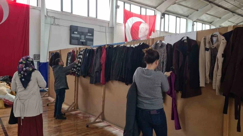 Zonguldak’ın Alaplı ilçesinde, Sosyal Yardımlaşma Vakfı iş birliği ile deprem bölgesinden gelen afetzedelerin giysi ve gıda ihtiyaçlarını karşılamak için hayır çarşısı kuruldu.