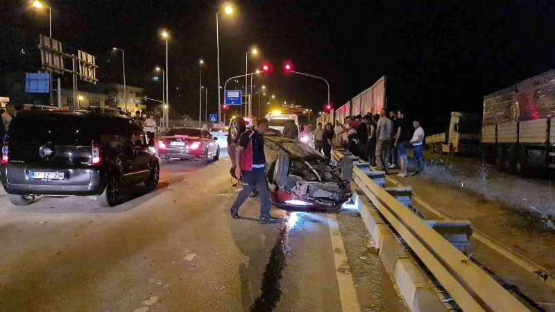 Alaplı’da elektrik direğine çarpan araç takla attı