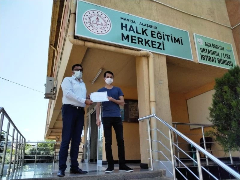 Manisa’nın Alaşehir ilçesinde Halk Eğitimi Merkezi Müdürlüğü’nce yürütülen açık ortaokul ve açık lise işlemleri korona virüs salgını sürecinde internet üzerinden gerçekleşti. Salgın sürecinde sınavlara internet üzerinden giren 305 öğrenci mezun olarak diplomalarını aldı. Yürütülen çalışmalar hakkında bilgi veren Alaşehir Halk Eğitimi Merkezi Müdürü Süleyman Ölmez, "Alaşehir Halk Eğitimi Merkezi Müdürlüğü’nce Açık Öğretim okulları iş ve işlemleri yürütülmektedir. İlçemiz genelinde yaklaşık 3 binin üzerinde öğrencinin açık öğretim okullarına kaydı bulunmaktadır. Yaklaşık bir buçuk yılı kapsamayan Covıd-19 salgın döneminde, ilçemizde açık öğretim kurumları sınavları çevrimiçi olarak gerçekleştirilmiştir. 3 dönem gerçekleştirilen açık öğretim kurumları sınavlarında 65 açık ortaokuldan, 240 açık liseden olmak üzere toplam 305 öğrenci mezun olarak müdürlüğümüzden diplomalarını almaya hak kazandılar. Alaşehir genelinde eğitimine ara vermiş bütün vatandaşlarımızı açık öğretime kayıt olmaları için halk eğitimi merkezine başvuruda bulunmalarını istiyoruz" dedi.