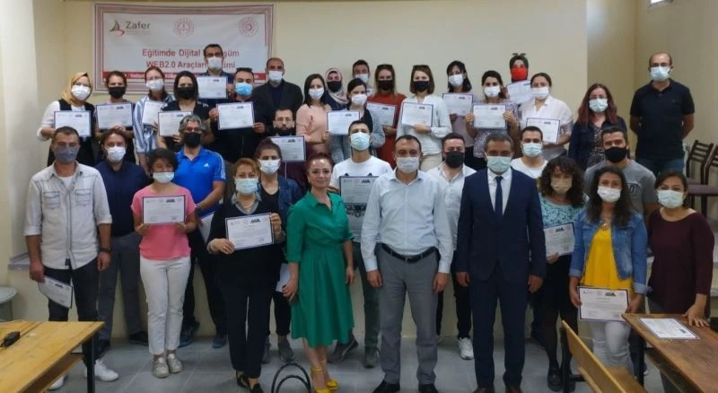 Zafer Kalkınma Ajansı 2021 Yılı Teknik Destek Programı kapsamında Alaşehir İlçe Milli Eğitim Müdürlüğü adına Alaşehir Fen Lisesi Öğretmeni Latife Çelik tarafından hazırlanan ve 40 eğitimcinin katıldığı eğitim tamamlandı. Eğitim sonunda düzenlenen törenle eğitimciler sertifikalarını aldı. ’Eğitimde Dijital Dönüşüm Web 2.0 Araçları Eğitimi’ sertifika töreninde Alaşehir İlçe Milli Eğitim Müdürü Hüseyin Güneş tarafından eğitimcilere sertifikaları takdim edildi.