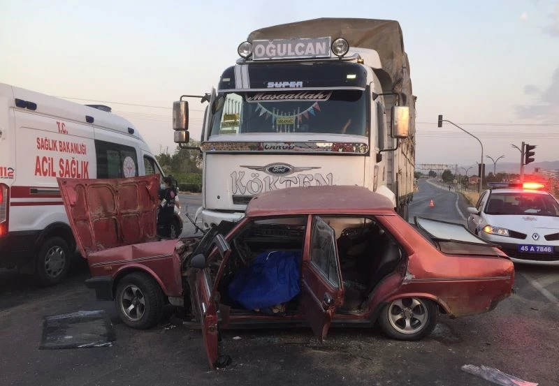 Kaza, bu sabah 06.00 sıralarında Alaşehir – Sarıgöl karayolu Çataltepe kavşağında meydana geldi. Edinilen bilgiye göre, Sarıgöl yönüne giden Oğulcan Kökten (27) yönetimindeki 45 SK 347 Plakalı boş üzüm kasası yüklü kamyon, Ali Kaya (57) yönetimindeki 20 YF 597 plakalı otomobil ile Çataltepe kavşağında çarpıştı. Kazada otomobil sürücüsü Ali Kaya olay yerinde hayatını kaybetti. Otomobilde bulunan Gökhan Yener (37), Güler Uçar (61) ve kamyon sürücüsü Oğulcan Kökten yaralandılar. Yaralılar, kaza yerine gelen polis, itfaiye ve 112 acil servis ekipleri tarafından otomobilden çıkardılar. Alaşehir Devlet Hastanesi’ne kaldırılan yaralılar burada tedavi altına alındılar. Polis kaza ile ilgili soruşturmayı sürdürüyor.