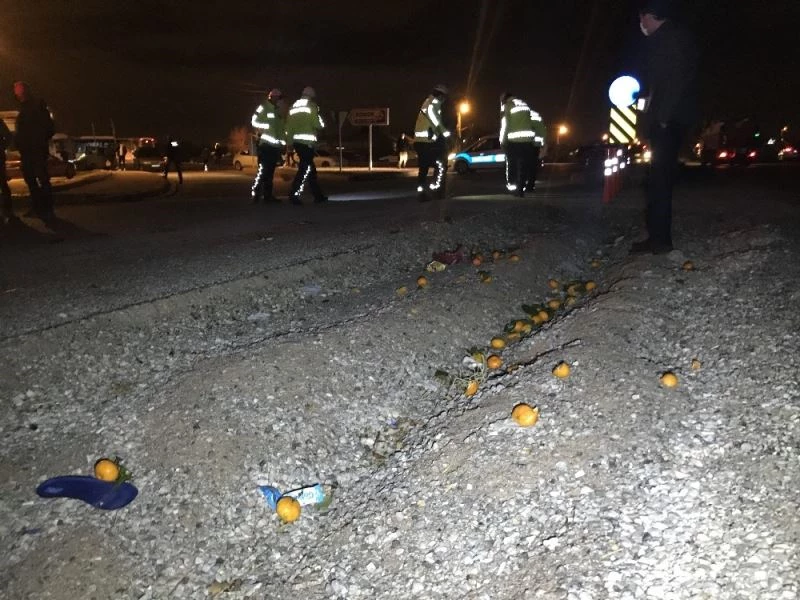 Konya’da panelvan minibüsün çarptığı vatandaş hayatını kaybetti. Ölen şahsın elindeki poşette bulunan portakalların etrafa saçıldığı görüldü.