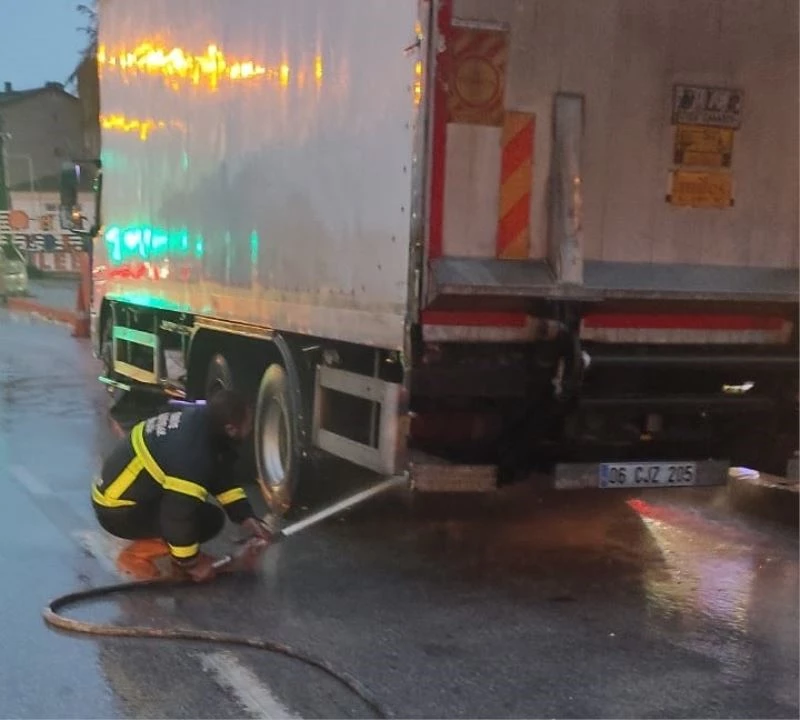 Kısa sürede olay yerine gelen itfaiye ekipleri, yangına müdahale ederek kamyonu yanmaktan kurtardı.