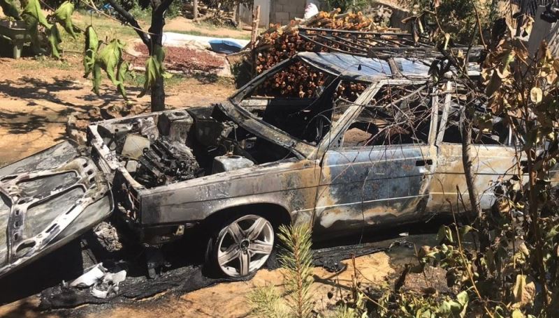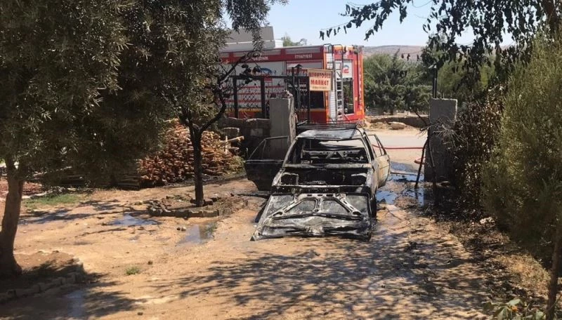 Adıyaman’ın Gölbaşı ilçesinde bir anda alev alan otomobil küle döndü.