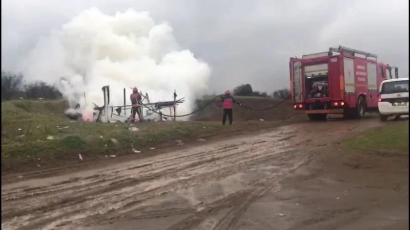 Olay, Sakarya’nın Karasu ilçesi Küçük Karasu Mahallesi’nde meydana geldi. Edinilen bilgiye göre, Ali Kır isimli vatandaşa ait olduğu öğrenilen balıkçı barakasında henüz belirlenemeyen bir sebeple yangın çıktı. Alev topuna dönen barakayı gören vatandaşlar durumu itfaiye ekiplerine bildirdi. İhbar üzerine olay yerine gelen itfaiye ekipleri, alev topuna dönen barakaya müdahale etmek için çalışma başlattı. İtfaiye ekiplerinin müdahalesi ile yangın kısa sürede kontrol altına alarak söndürüldü. Çıkan yangında barakadan geriye yanmış odun parçaları kaldı. Yangınla ilgili inceleme başlatıldı.