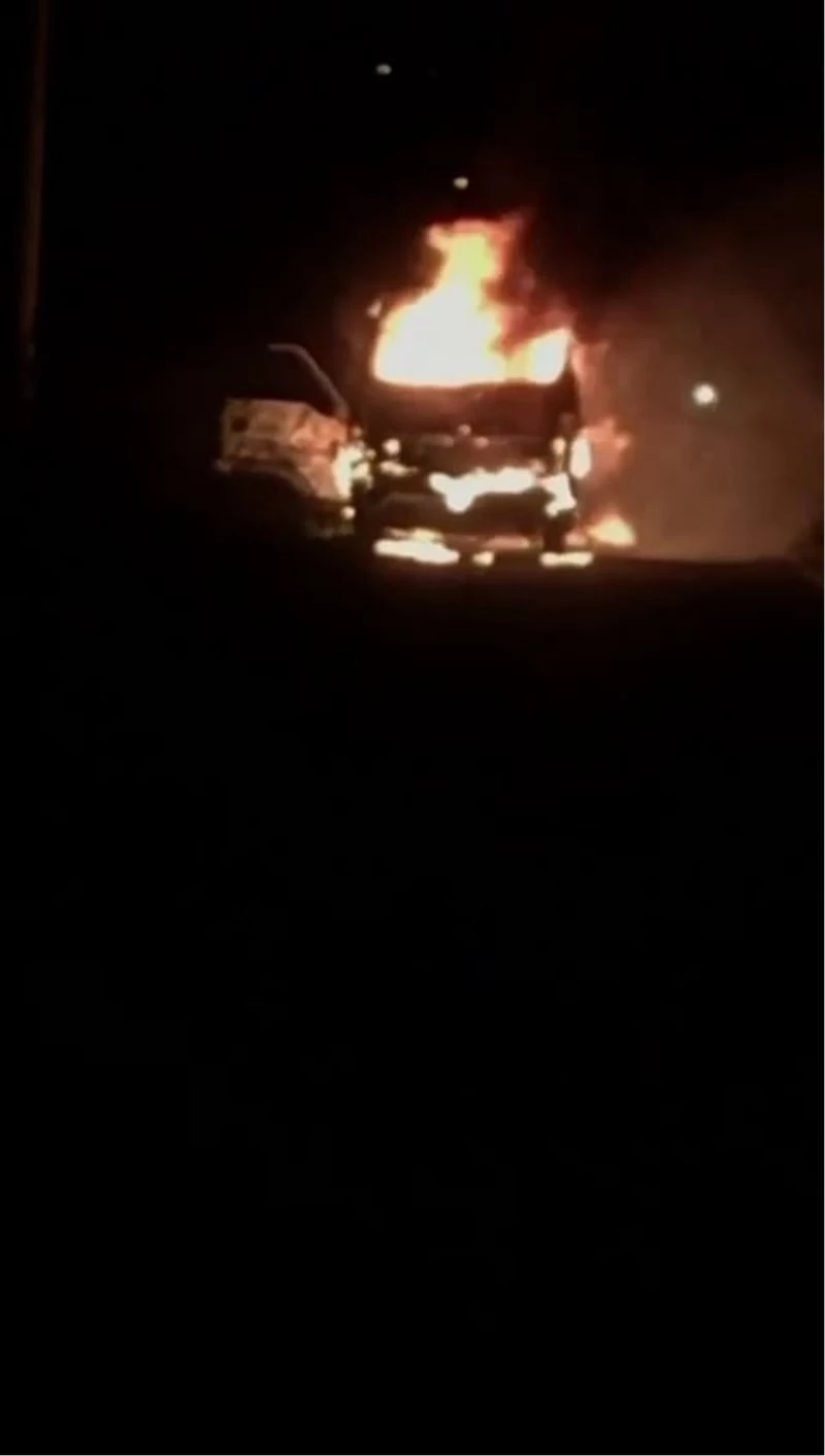 Alev topuna dönen kamyonetten geriye demir yığınları kaldı