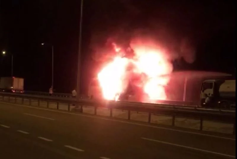 Şantiye binasında yangını görerek su tankeriyle yangına koşan ve ilk müdahaleyi yapan otoyol şantiye görevlisi Volkan Demir (35), “Dumanı gördük ona geldik. Arazözle müdahale ettik yangına” diye konuştu.