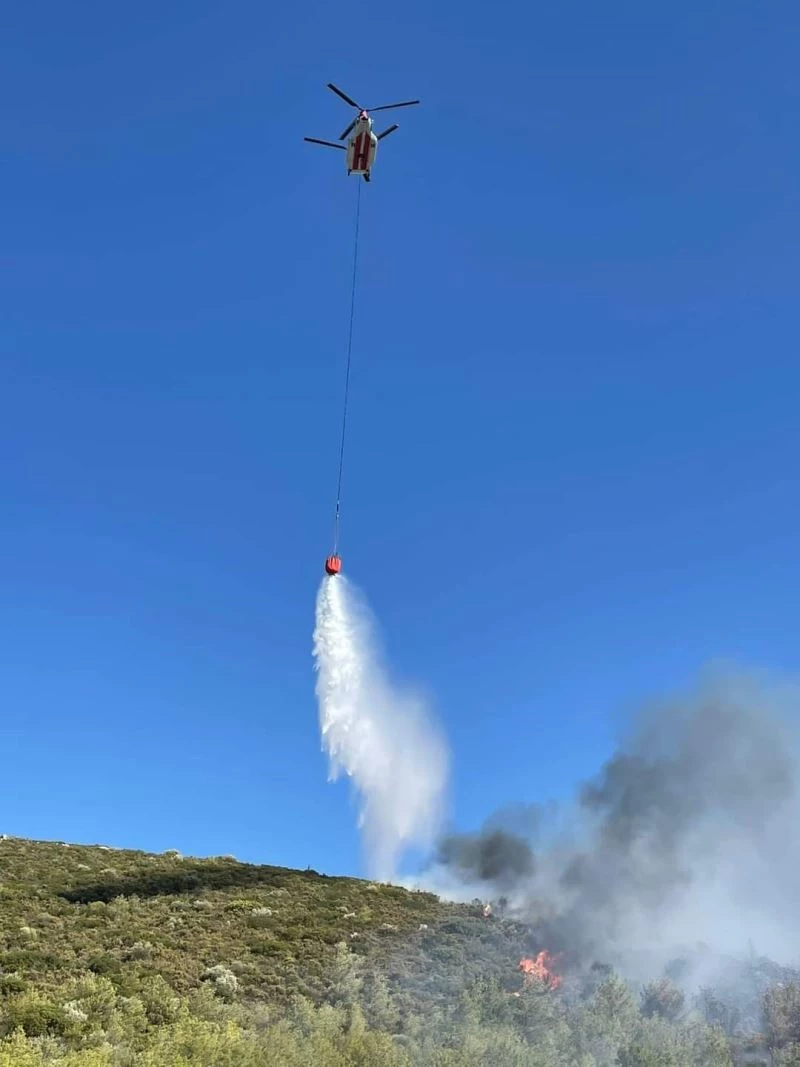 Muğla’nın Milas ilçesinde çıkan orman yangınına, yangın söndürme uçak ve helikopterleri yoğun bir şekilde müdahale ediyor.