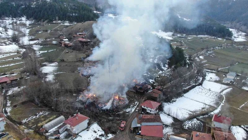 Kastamonu’da 15 evin alevlere teslim olduğu köy havadan görüntülendi.