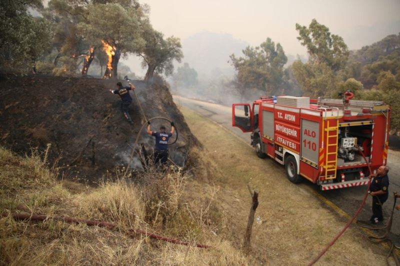 Gece saatlerinde de devam eden yangını söndürmek için Aydın Büyükşehir Belediyesi ekipleri seferber oldu. Aydın Büyükşehir Belediyesi Genel Sekreteri Ertuğrul Yamen ve İtfaiye Daire Başkanı Serdar Adanır başta olmak üzere Büyükşehir Belediyesi bürokratları yangının kontrol altına alınabilmesi için bölgede ekipleri sevk ve idare ediyor. Ekiplerin gayretli çalışmaları ile yangının yerleşim alanlarına sıçraması önlenirken, yangının yüksek kesimlerde devam ettiği öğrenildi. Büyükşehir Belediyesi’nin ağır iş makineleri de ormanlık alanda müdahaleyi kolaylaştırabilmek için arazözlere yol açıyor. Büyükşehir Belediyesi yangına 60 araç ve 500 personelle müdahale ediyor. Diğer taraftan ASKİ’ye ve Büyükşehir Belediyesi’ne ait bölgedeki tüm su tankerleri de söndürme ekiplerine su taşımaya devam ediyor.